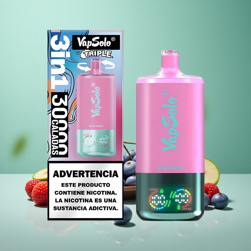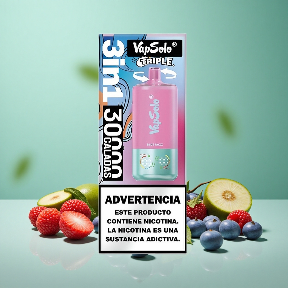 VapSolo Triple 30000 Puffs Blå Hindbær 40ml 20/50mg/ml Nikotin Denmark wholesalers