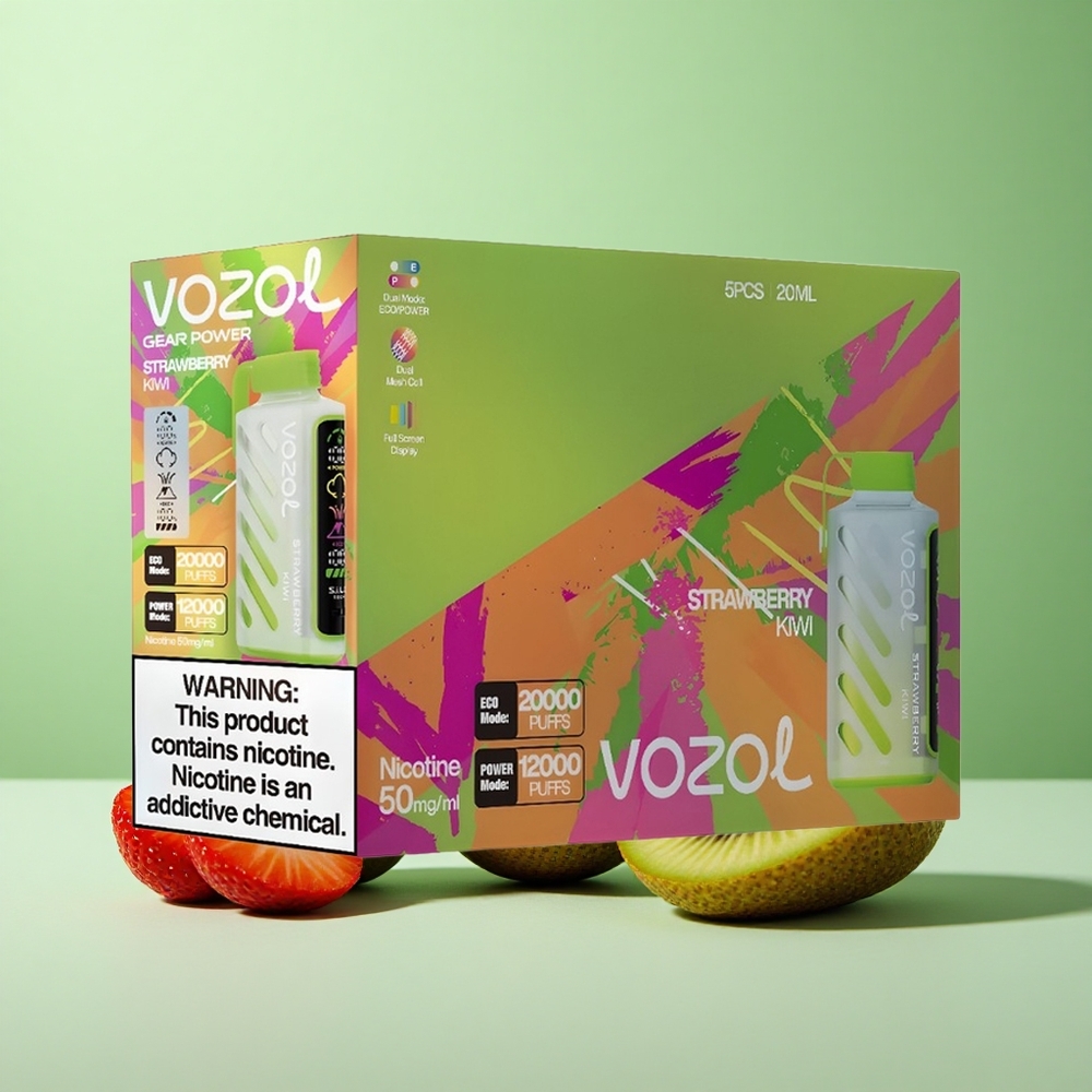 VOZOL Gear Power 20000 Puffs Jordbær Kiwi Fuldt Skærm Display 20mL Denmark wholesalers