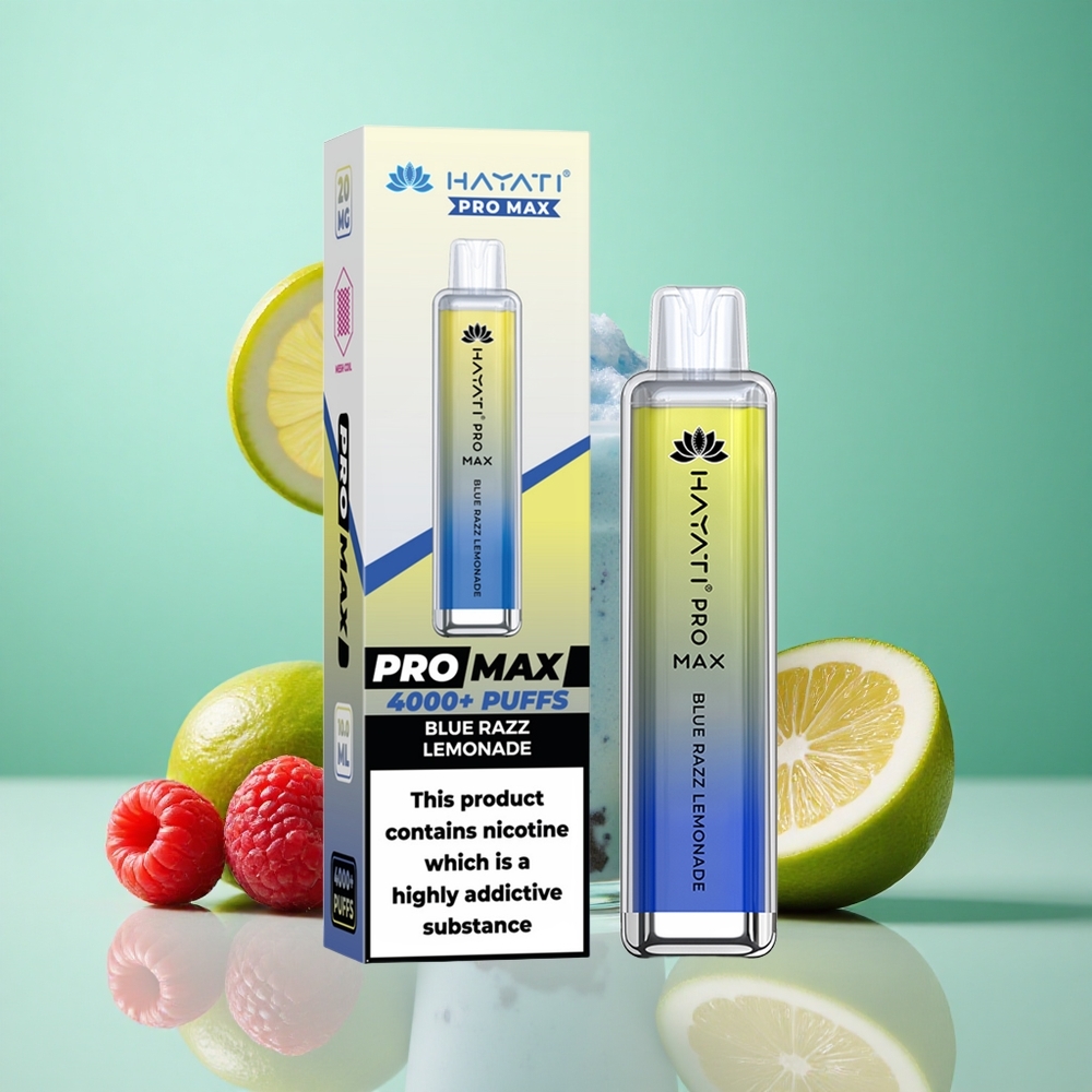 Hayati Pro Max 4000 Puffs Blå Hindbær Lemonade Opladningsbar Batteri Denmark wholesalers