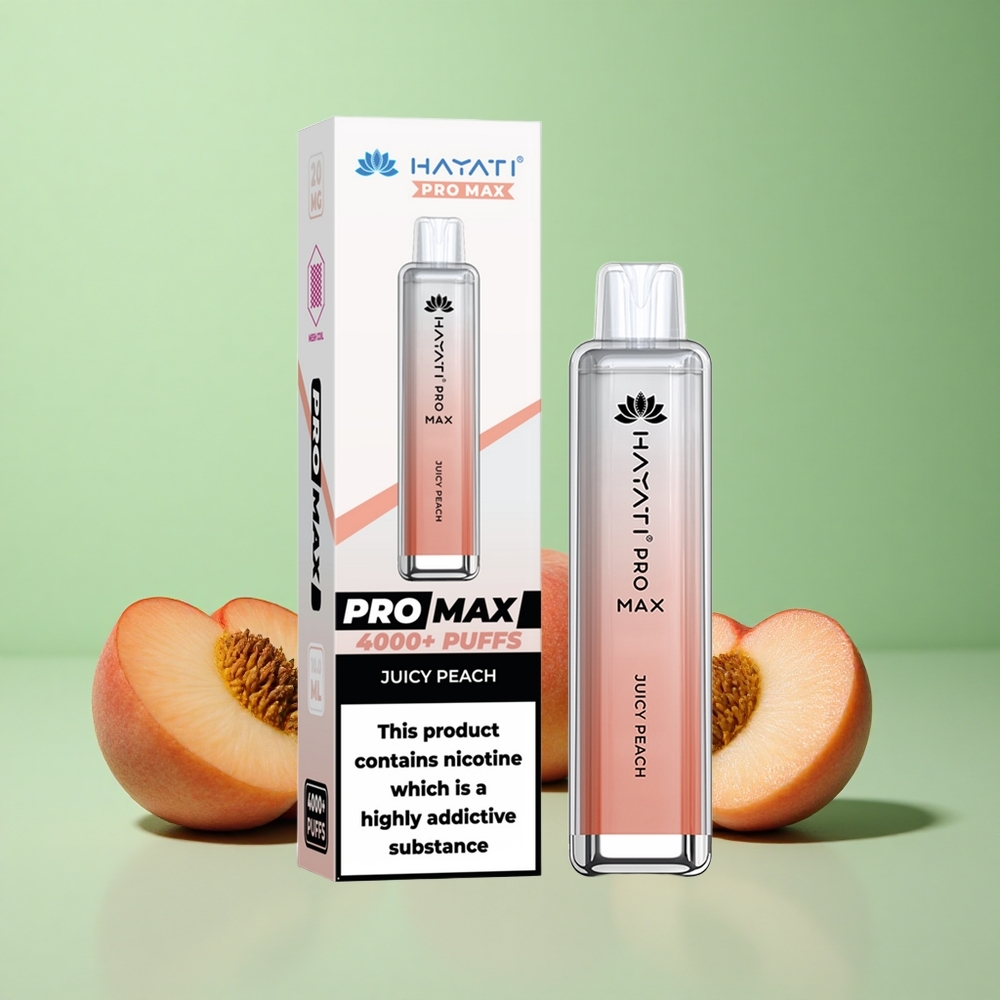 Hayati Pro Max 4000 Puffs Juicy Peach (Saftig Fersken) Opladbar Batteri & 1400mAh Denmark wholesalers