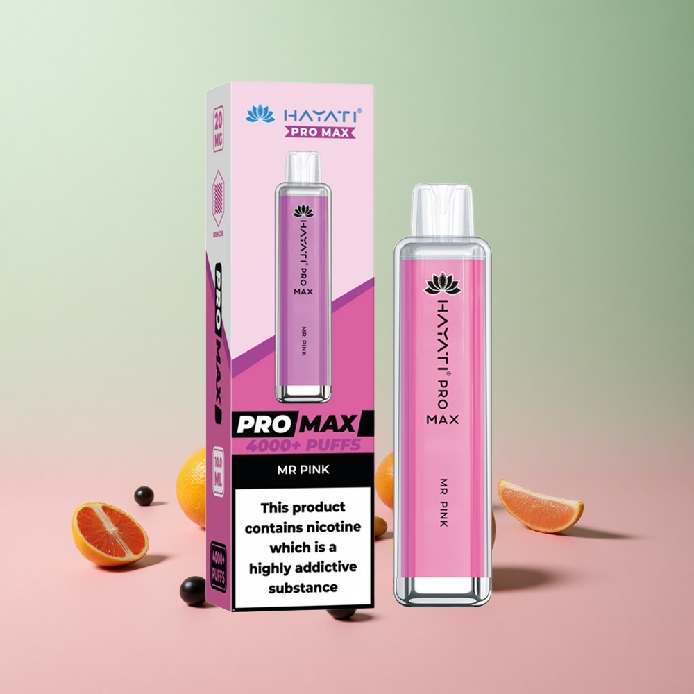Hayati Pro Max 4000 Puffs Mr Lys (Pink) Opladningsbar Batteri & 2ml Tank Denmark wholesalers
