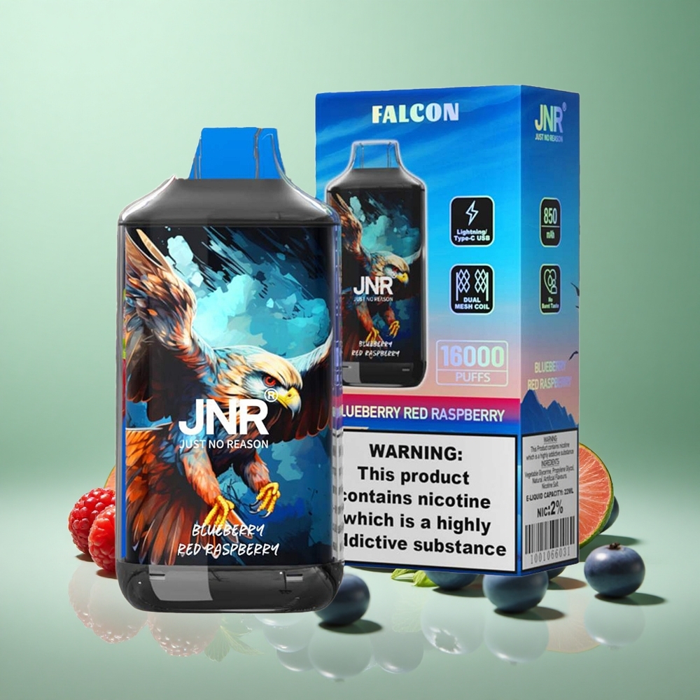 JNR Falcon 16000 Puffs Blåbær Rød Hindbær 850 mAh Dual Mesh Coil Denmark wholesalers