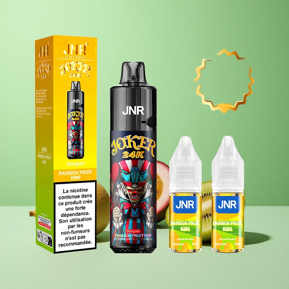 JNR Joker 24000 Puffs Passionfrugt Kiwi 2% Nikotinindhold Synligt E-væskeniveau Denmark wholesalers