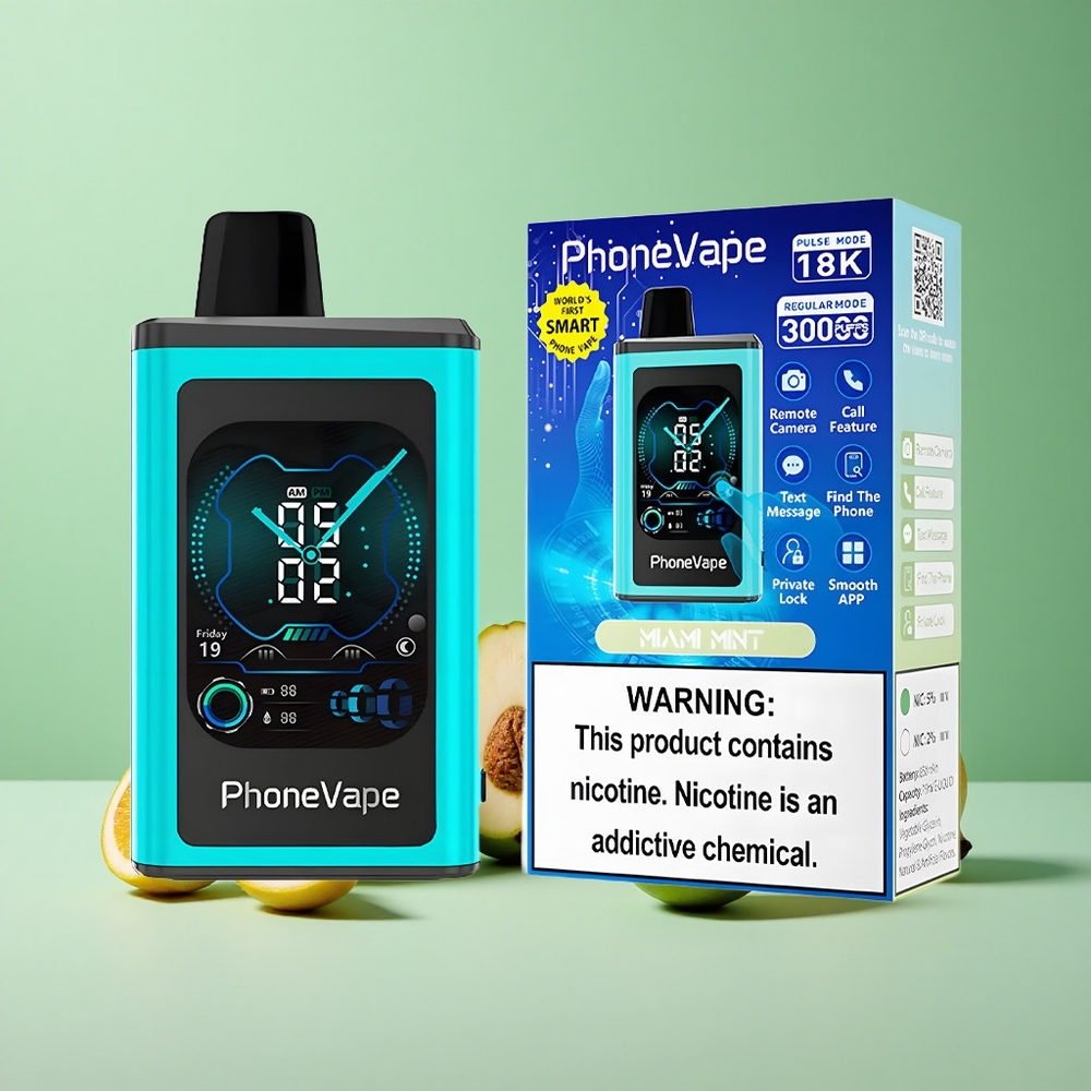 JNR PhoneVape 30000 Puffs Justerbar Luftgennemstrømning App-kontrolleret Miami Mynte Denmark wholesalers